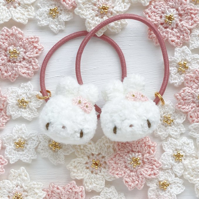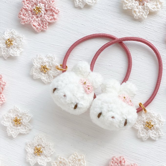 ぷっくりころんとフォルムがかわいい うさぎさんのヘアゴム❀